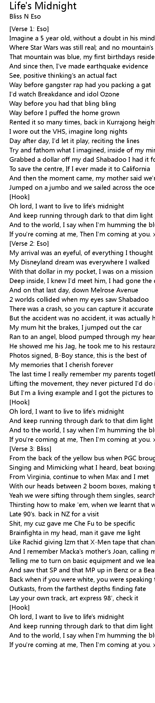 Oh lord, I want to live to life's midnight |