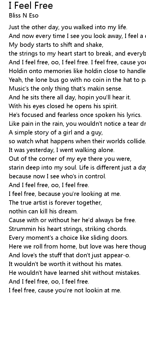 And I feel free, oo, I feel free. |