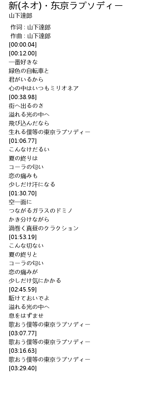 | [03:19.95] | 歌おう僕等の東京ラプソディー |