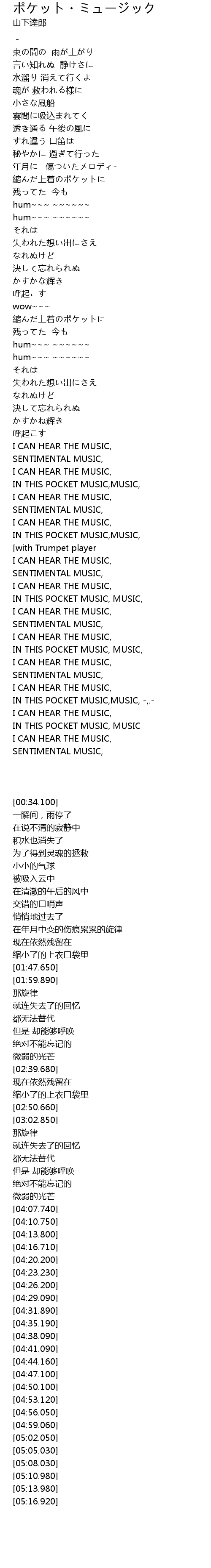 | [04:16.710] | IN THIS POCKET MUSIC, MUSIC, |