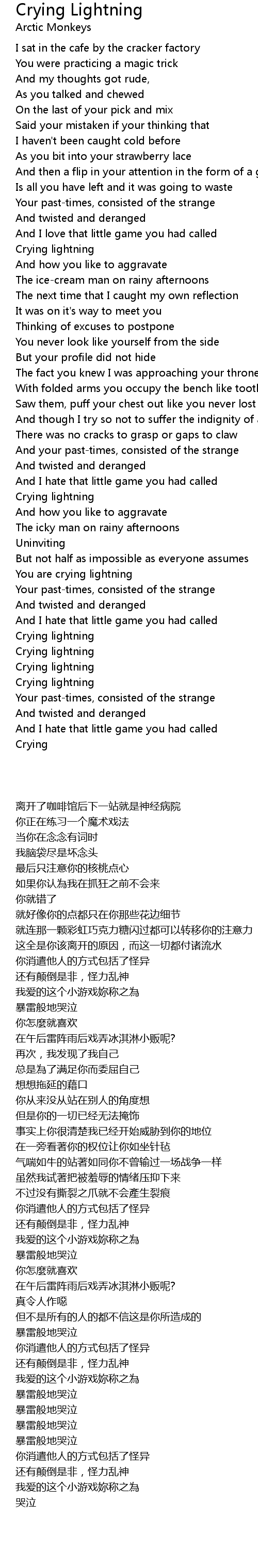 Crying Lightning Lyrics