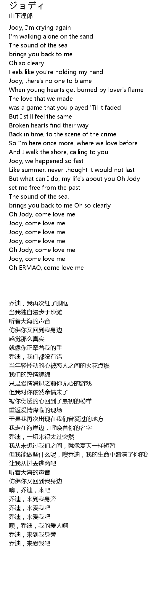 | [02:01.0] | But what can I do, my life's about you Oh Jody |