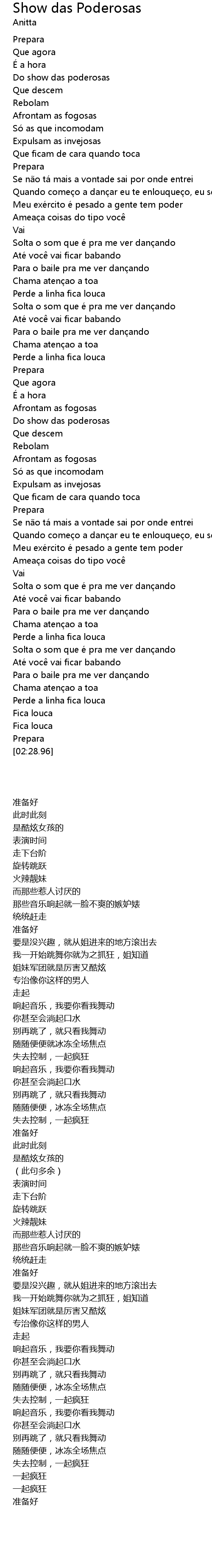 | [00:36.69] | Quando começo a dançar eu te enlouqueço, eu sei |