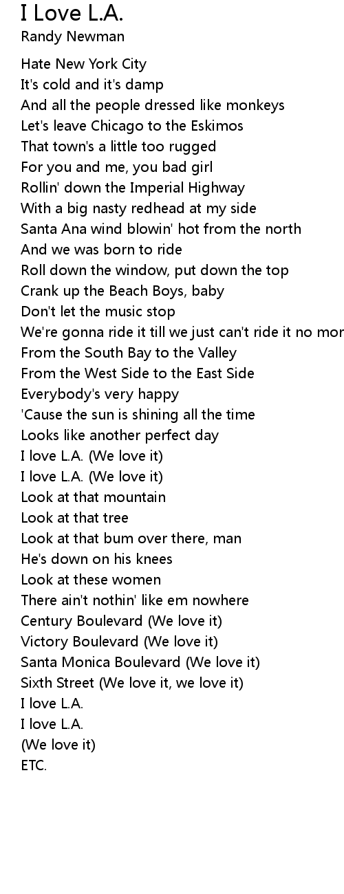 I Love L.A. Lyrics