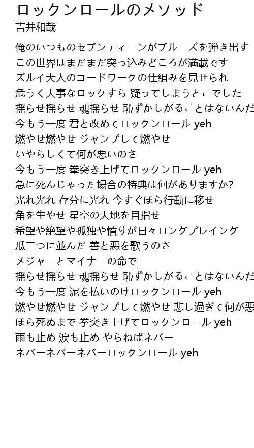 | 今もう一度 君と改めてロックンロール yeh | |