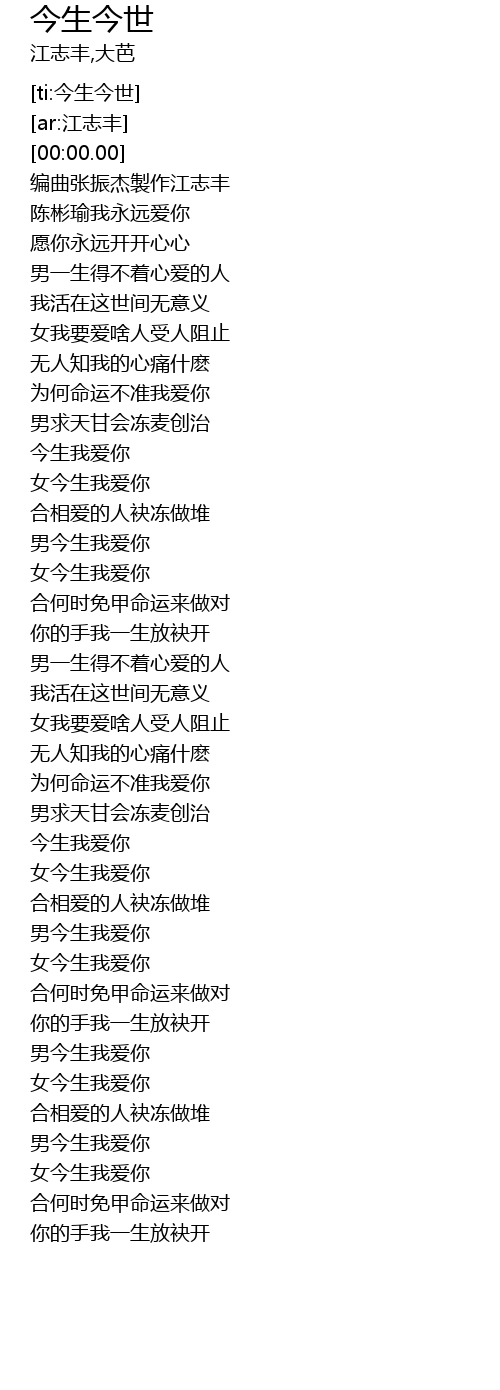 | [00:06.22] | 编曲张振杰製作江志丰 |