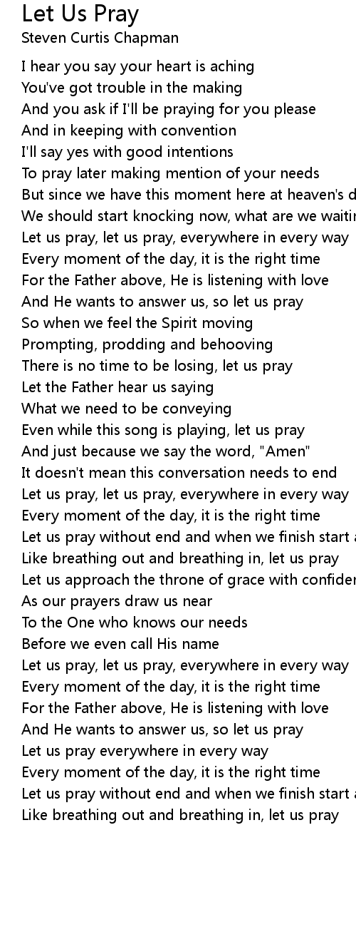 Let us pray, let us pray, everywhere in every way |