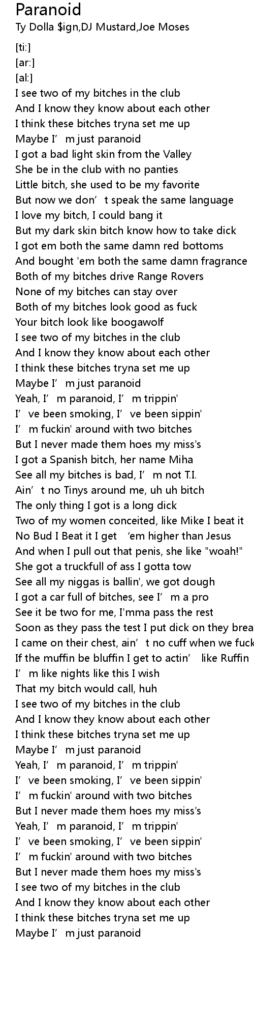 | [01:27.63] | Yeah, I' m paranoid, I' m trippin' |