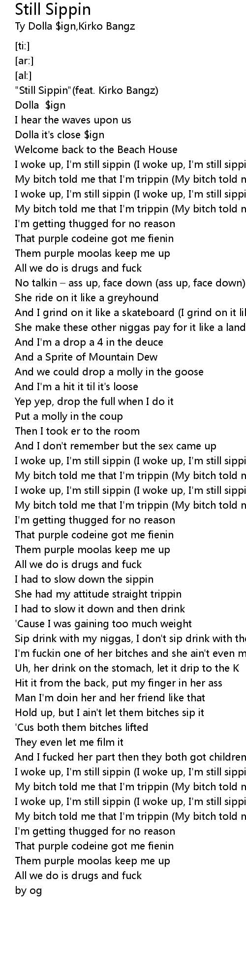 | [00:22.34] | I woke up, I'm still sippin (I woke up, I'm still sippin) |