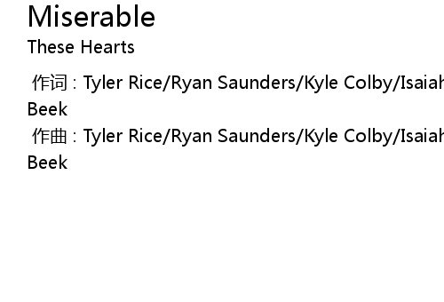 | [00:00.000] | 作词 : Tyler Rice/Ryan Saunders/Kyle Colby/Isaiah Folk/Daryl Van Beek |