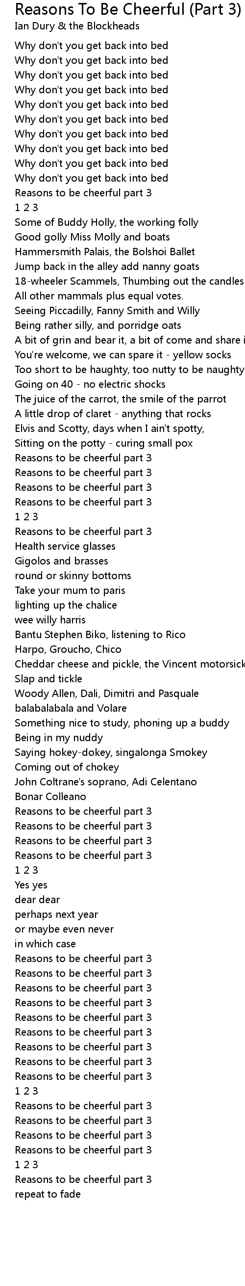 Reasons to be cheerful part 3 |
