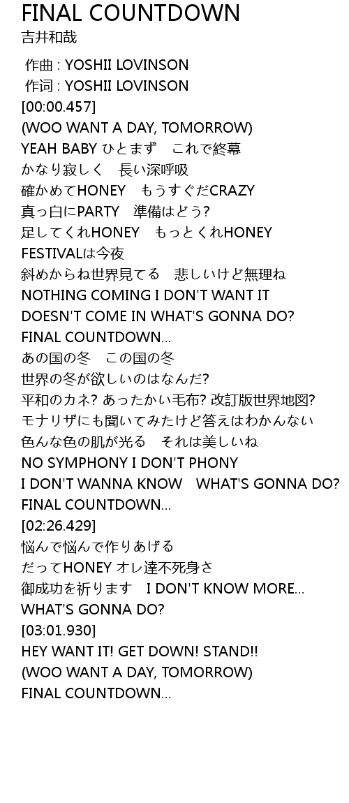| [02:10.991] | FINAL COUNTDOWN... |