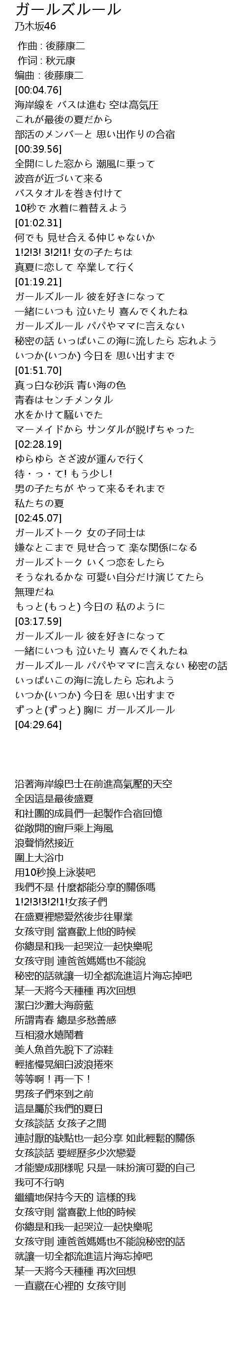 | [04:03.21] | ガールズルール パパやママに言えない 秘密の話 |