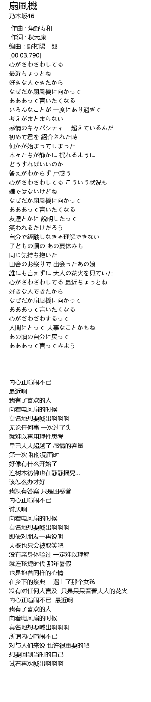 | [02:40.420] | 心がざわざわしてる 最近ちょっとね |