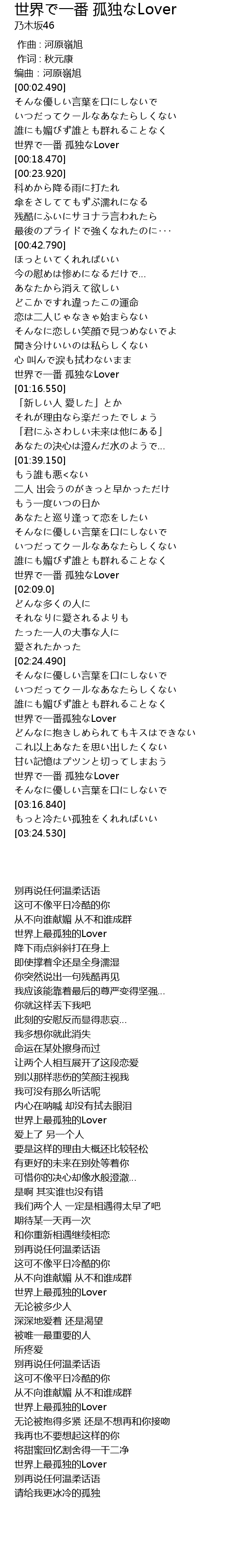 | [02:54.100] | shi jie yi fan gu du Lover |