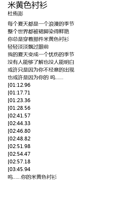 | [03:51.45][03:45.94][03:01.83][01:54.32] | 你的米黄色衬衫 |
