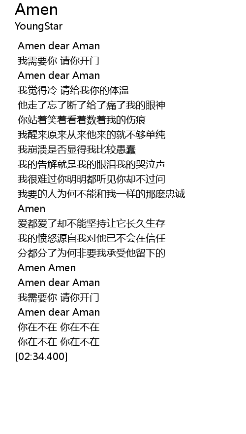 | [00:32.310] | wǒ xū yào nǐ qǐng nǐ kāi mén |