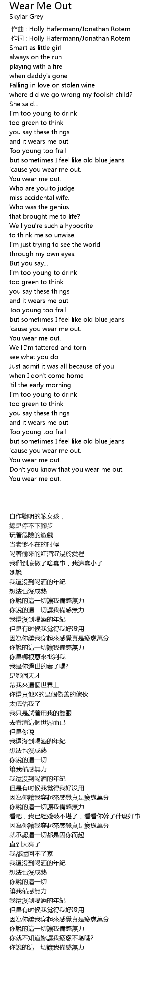 | [02:44.983] | 'cause you wear me out. |