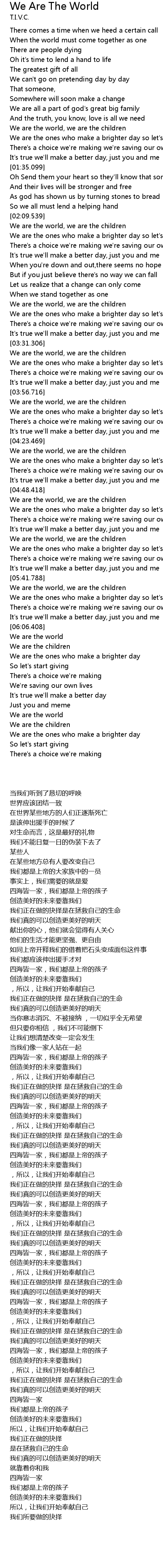 | [03:33.259] | We are the world, we are the children |