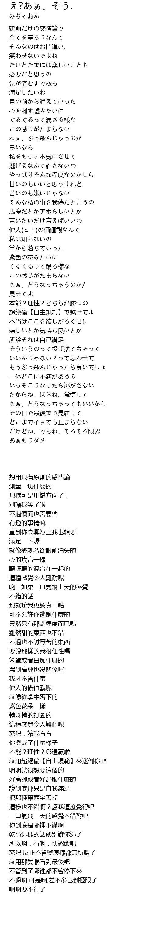 | [02:35.700] | さぁ、どうなっちゃってもいいから |