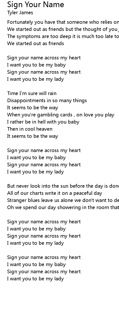 Sign your name across my heart |