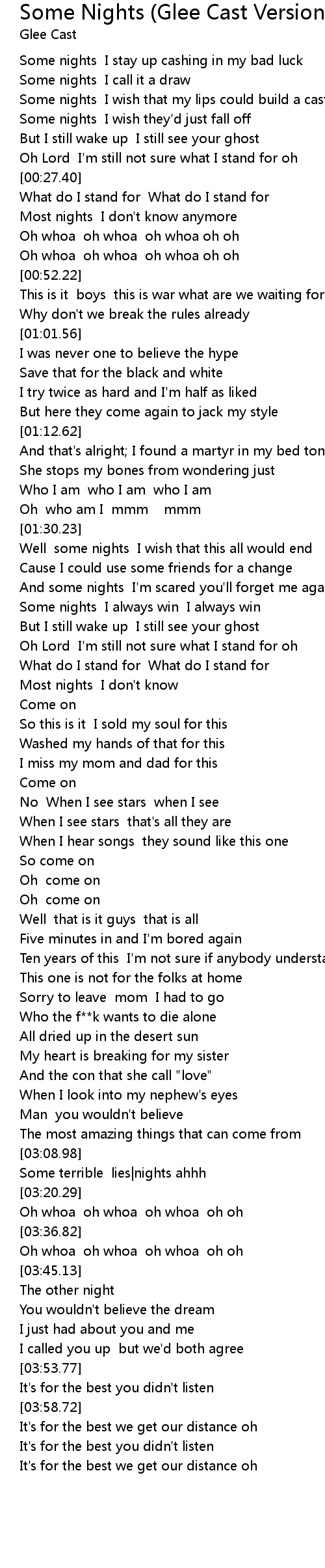 Some Nights (Glee Cast Version) Lyrics