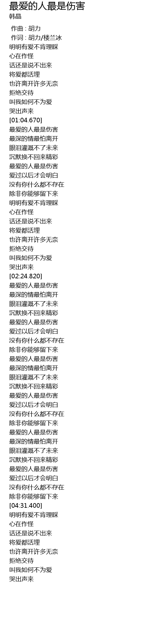 | [04:00.0] | 最爱的人最是伤害 |