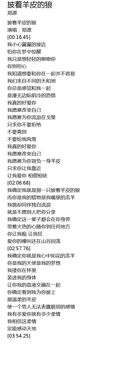 | [01:51.16] | 我愿意为你背负一身羊皮 |