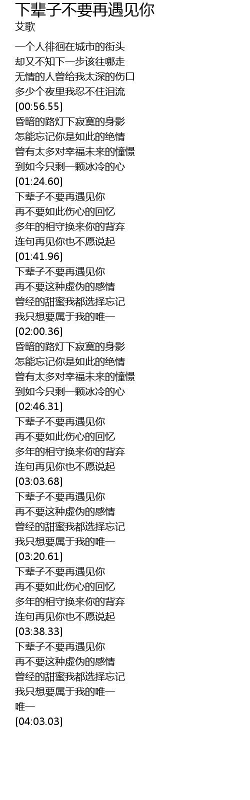 | [03:39.61] | 下辈子不要再遇见你 |