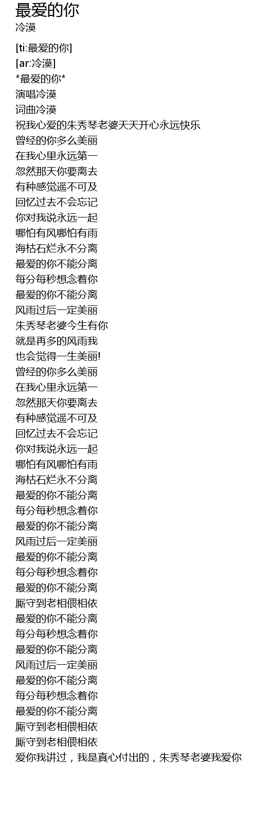 | [03:29.22] | 爱你我讲过,我是真心付出的,朱秀琴老婆我爱你 |