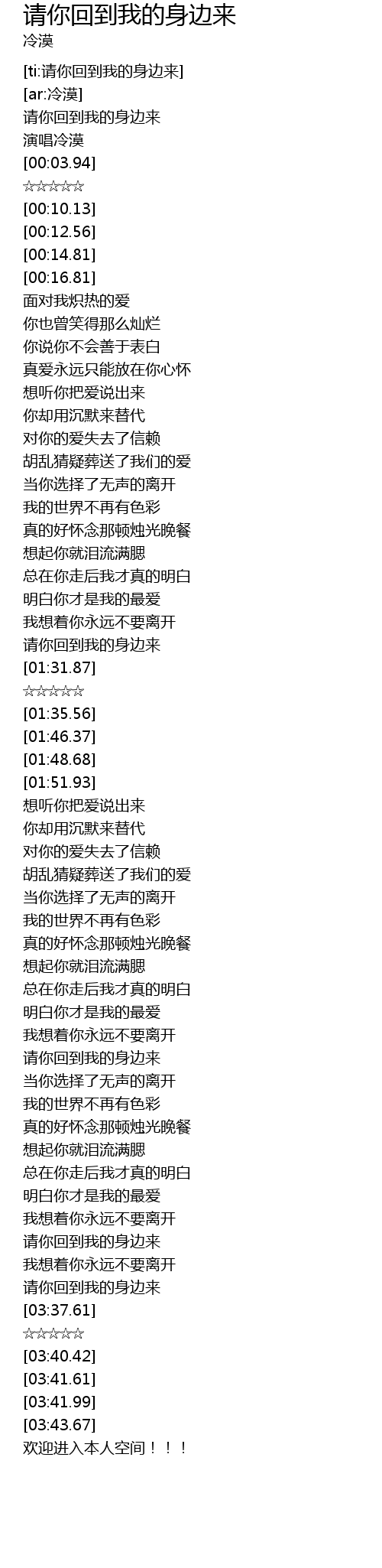 | [03:17.93] | qǐng nǐ huí dào wǒ de shēn biān lái |