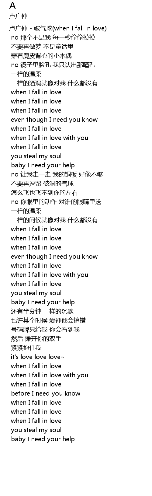 | 卢广仲 - 破气球(when I fall in love) | |