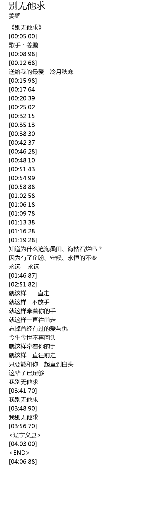 | [02:49.00][01:16.28] | wǒ bié wú tā qiú |
