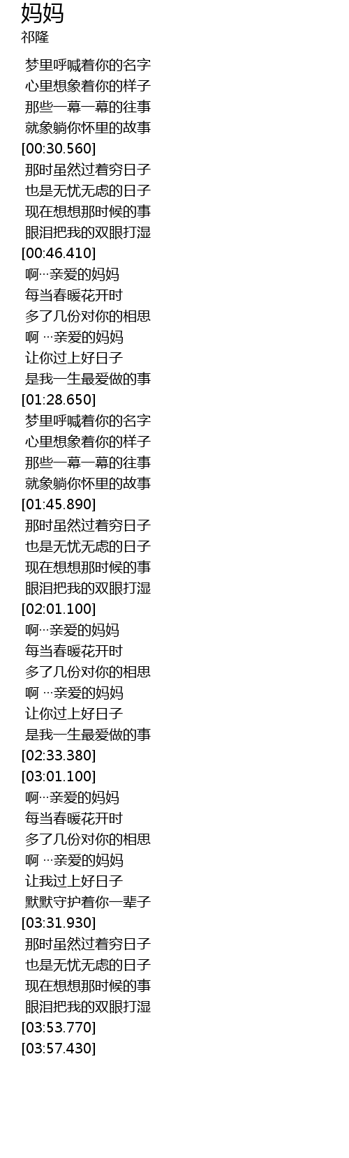 | [02:03.290] | a qīn ài de mā mā |