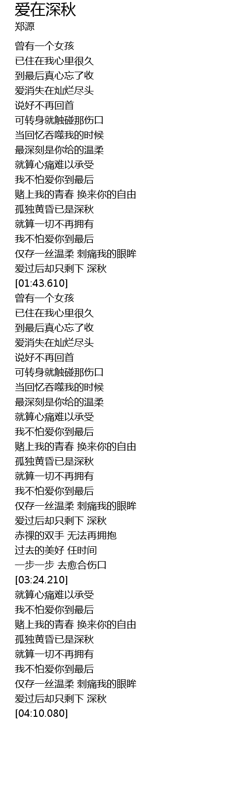 | [01:35.480] | 爱过后却只剩下 深秋 |
