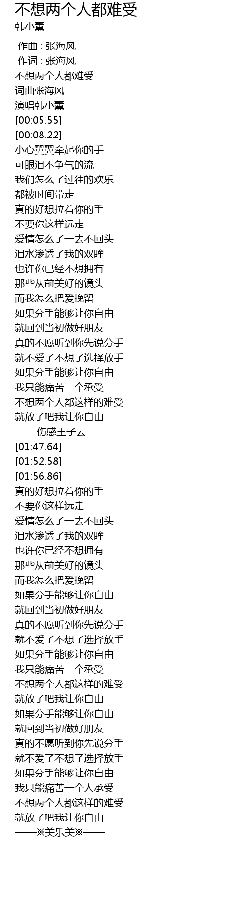 | [00:00.34] | bù xiǎng liǎng gè rén dōu nán shòu |