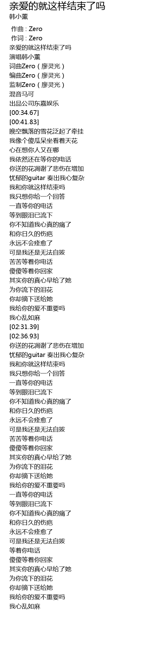 | [00:01.89] | qīn ài de jiù zhè yàng jié shù le ma |