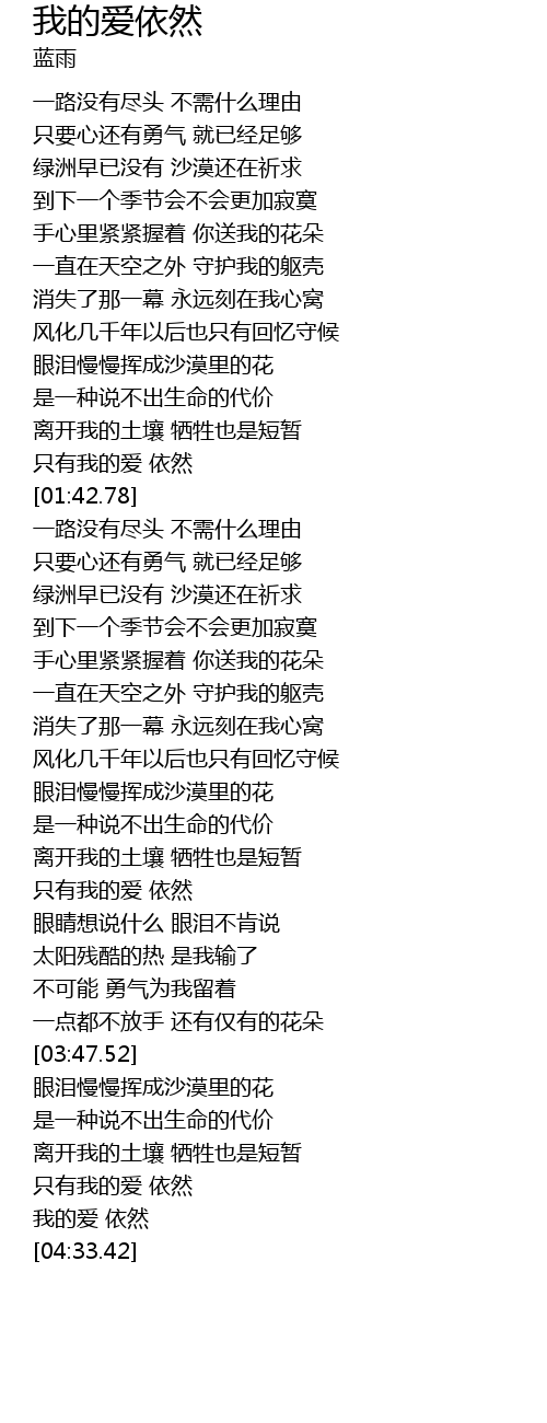 | [00:42.14] | 绿洲早已没有 沙漠还在祈求 |