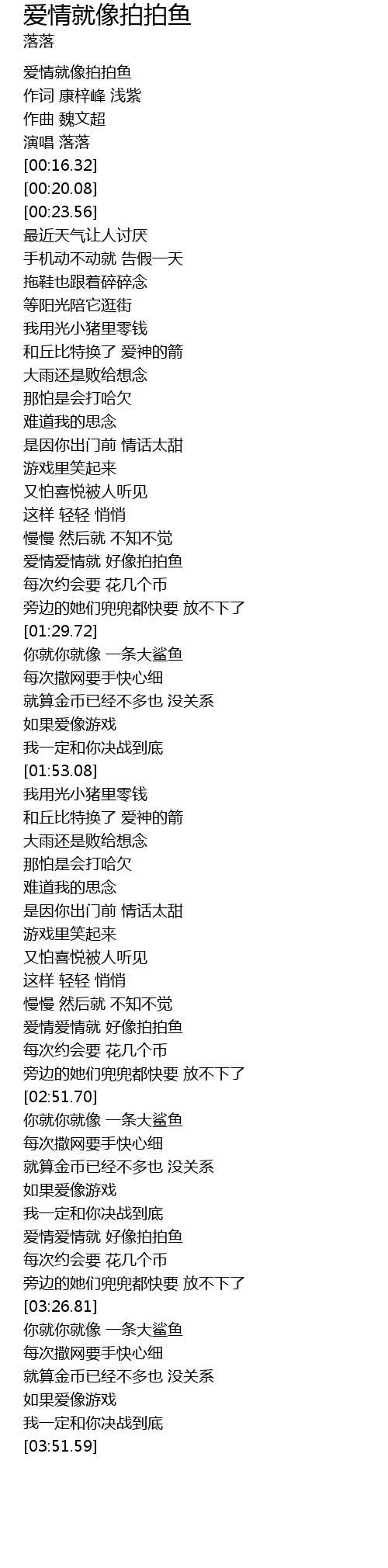 | [00:00.00] | 爱情就像拍拍鱼 |