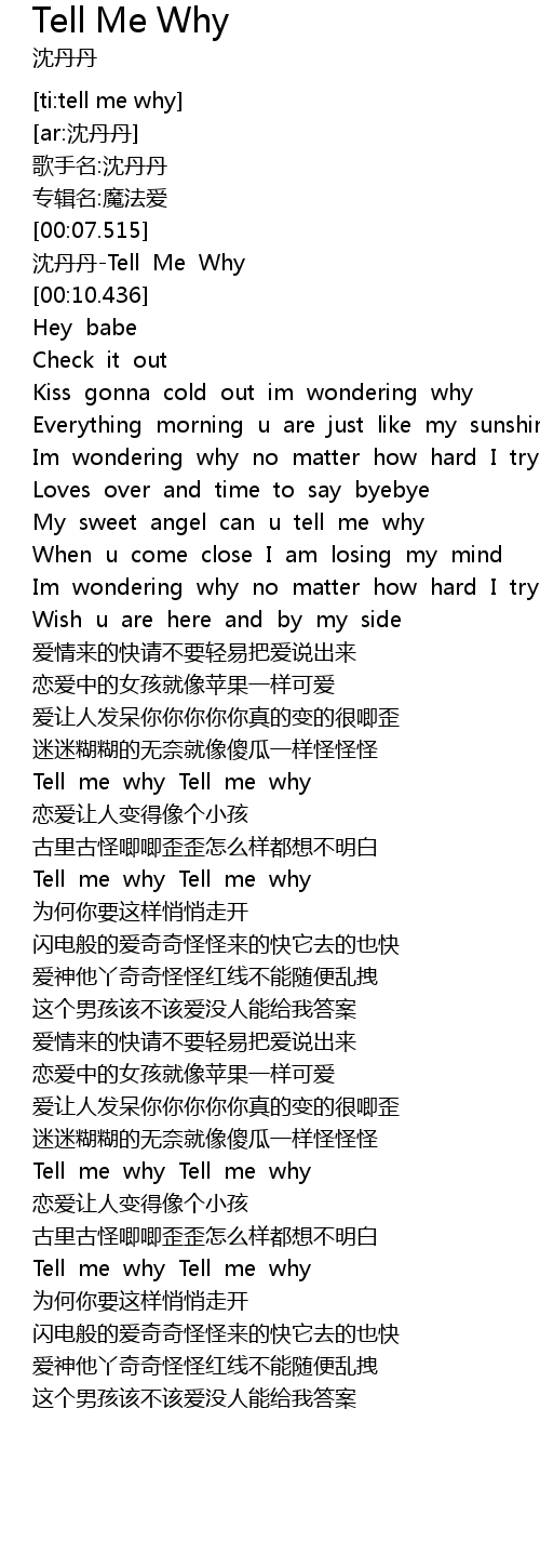 | [00:10.203] | shěn dān dān Tell Me Why |