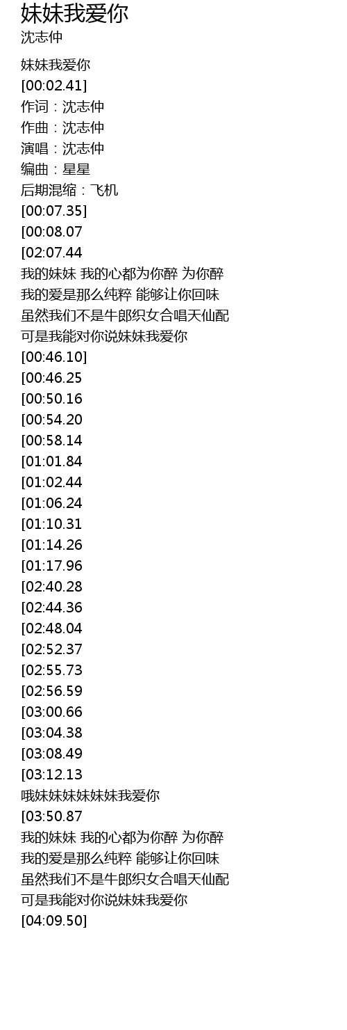 | [00:00.00] | 妹妹我爱你 |
