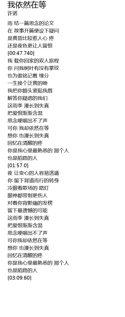 | [01:32.880] | kě nǐ wǒ què yī rán zài děng |