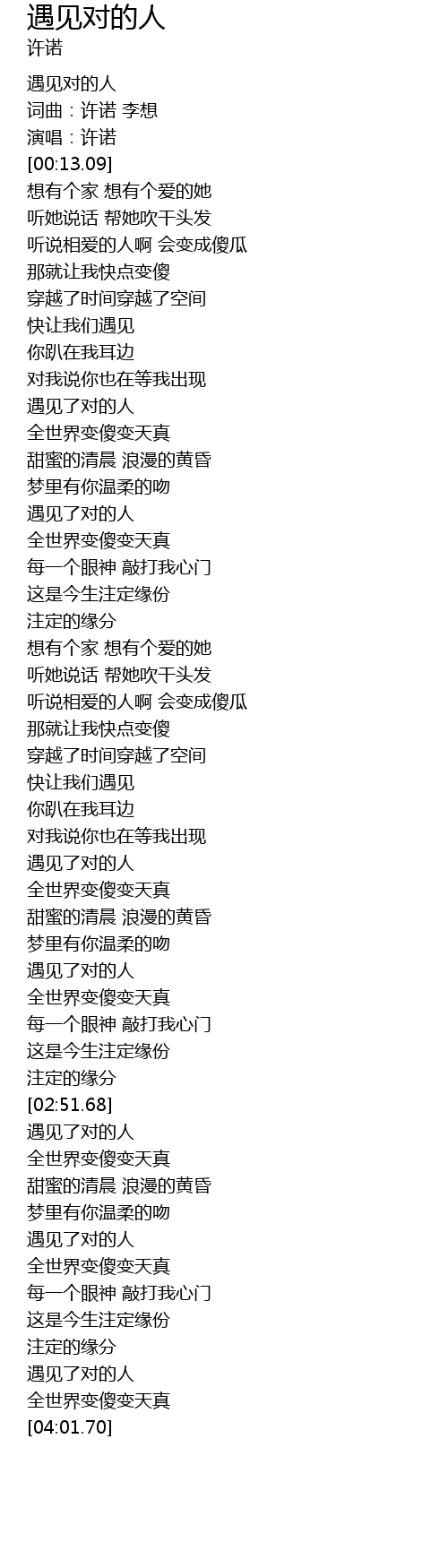 | [00:04.75] | cí qǔ: xǔ nuò lǐ xiǎng |