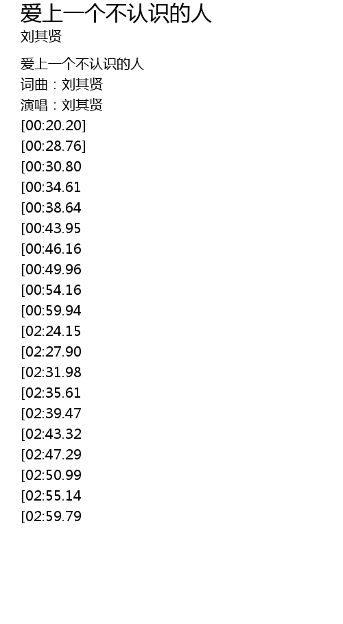 | [03:00.81][02:24.15][01:01.45] | 我爱上一个不认识的人 |