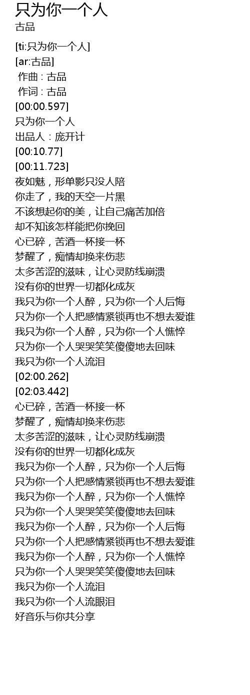 | [ti:只为你一个人] | |