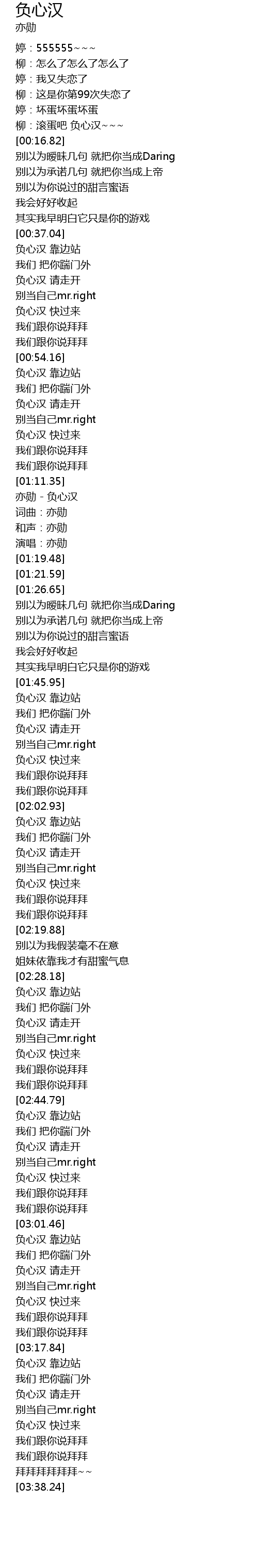| [03:26.81] | 负心汉 快过来 |