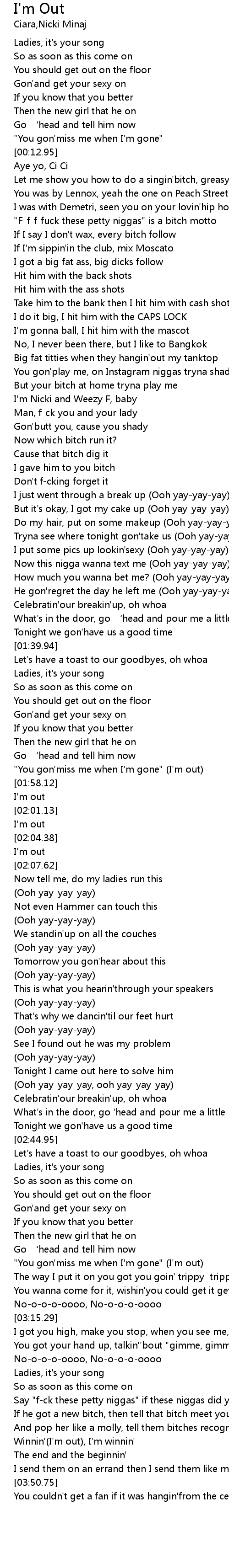 | [03:00.61] | "You gon'miss me when I'm gone" (I'm out) |