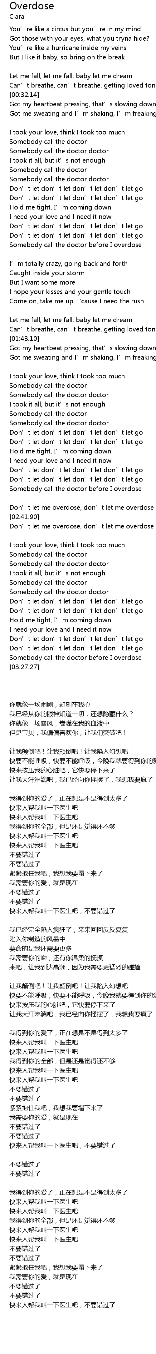 | [02:46.90] | Don' t let me overdose, don' t let me overdose |