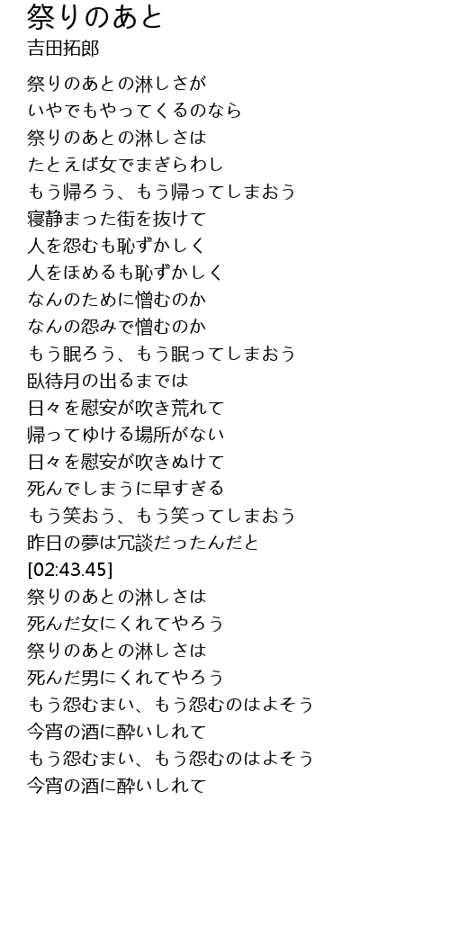 | [02:58.41] | 祭りのあとの淋しさは |
