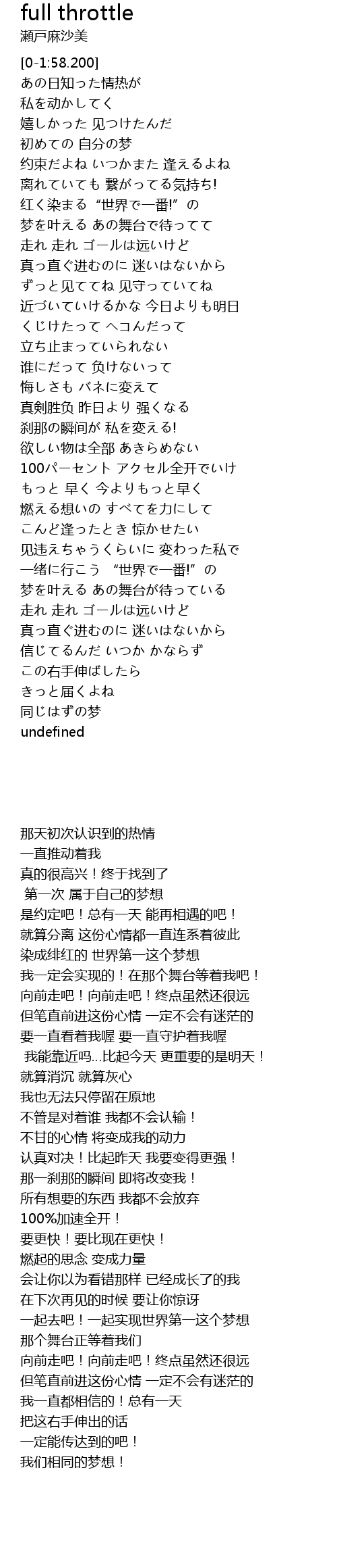 | [02:31.410] | 100パーセント アクセル全开でいけ |